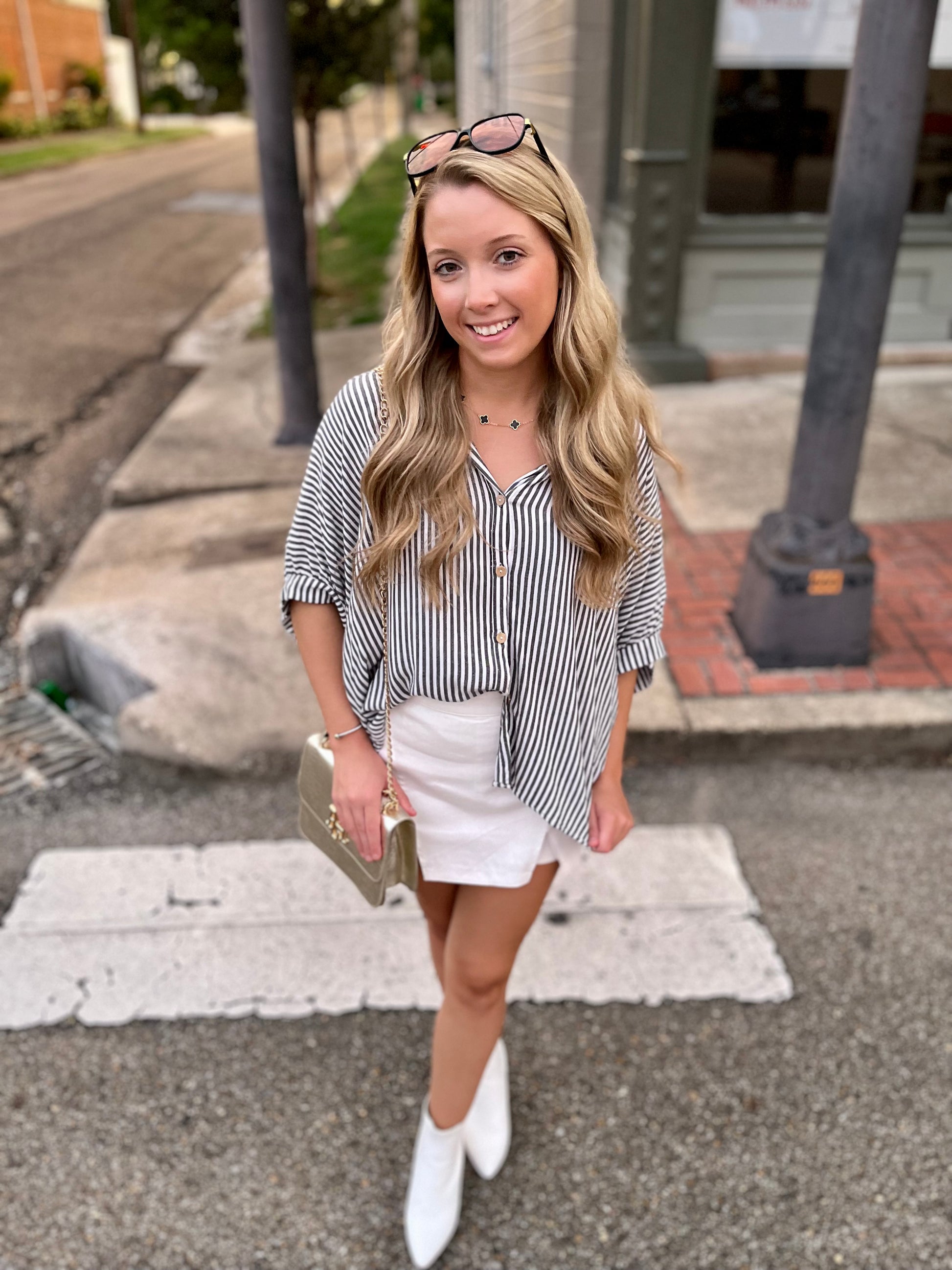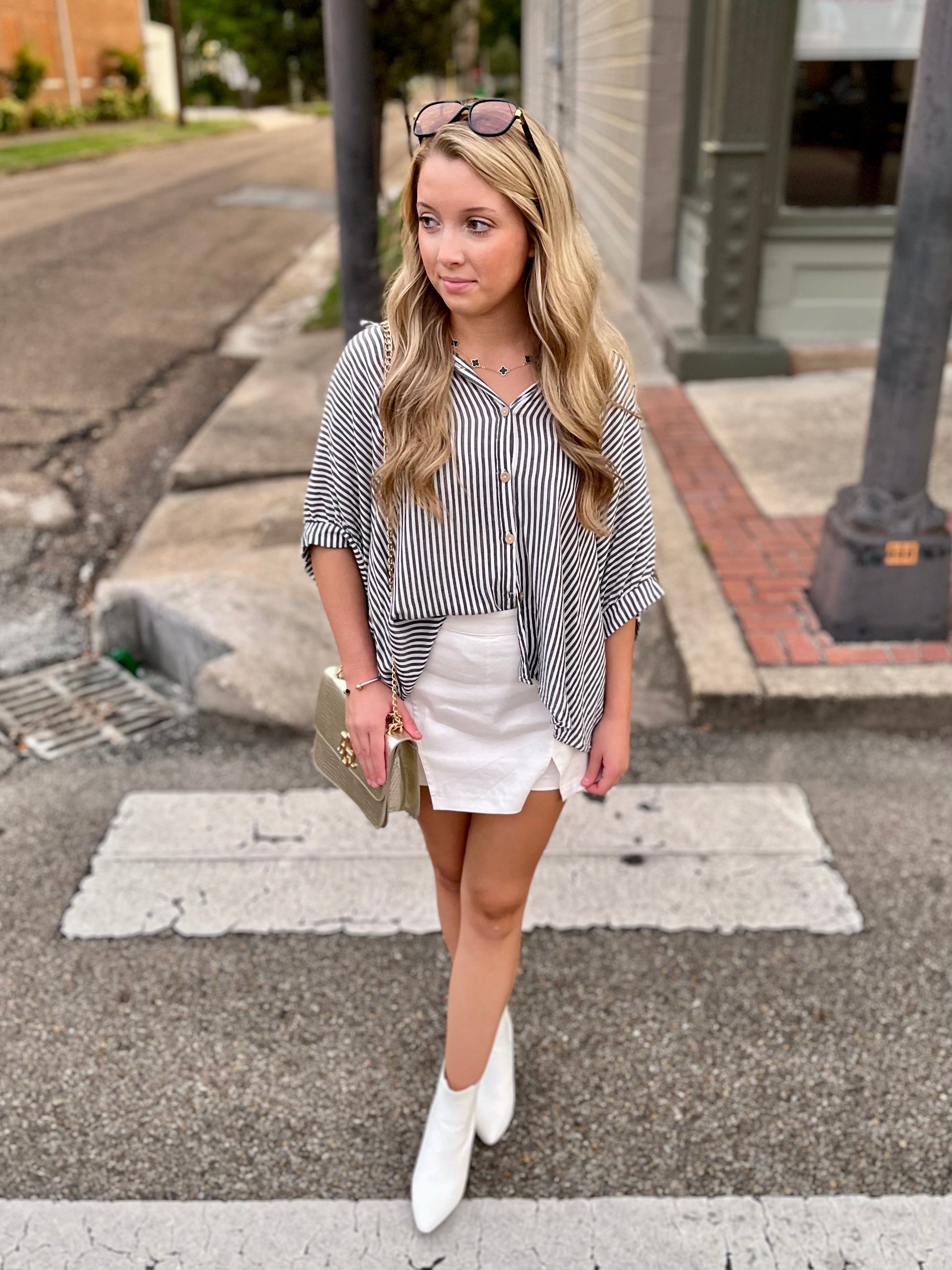 Unleash your bold and carefree style with the Anya Stripe Top! Made from 100% rayon, this oversized button-up shirt exudes effortless coolness and comfort. Perfect for any occasion, its striped design and loose fit make it a must-have in your wardrobe. Available in four colors.