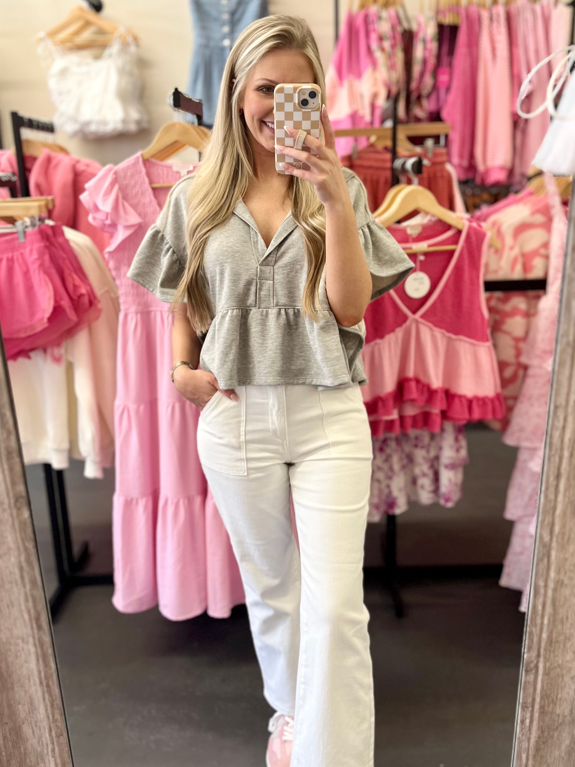 Discover ultimate comfort and style with the Caden Denim- White. This high rise pair features ankle flare and a patch pocket for a trendy look while the comfort stretch denim provides a perfect fit. Elevate your wardrobe with this must-have fashion staple.