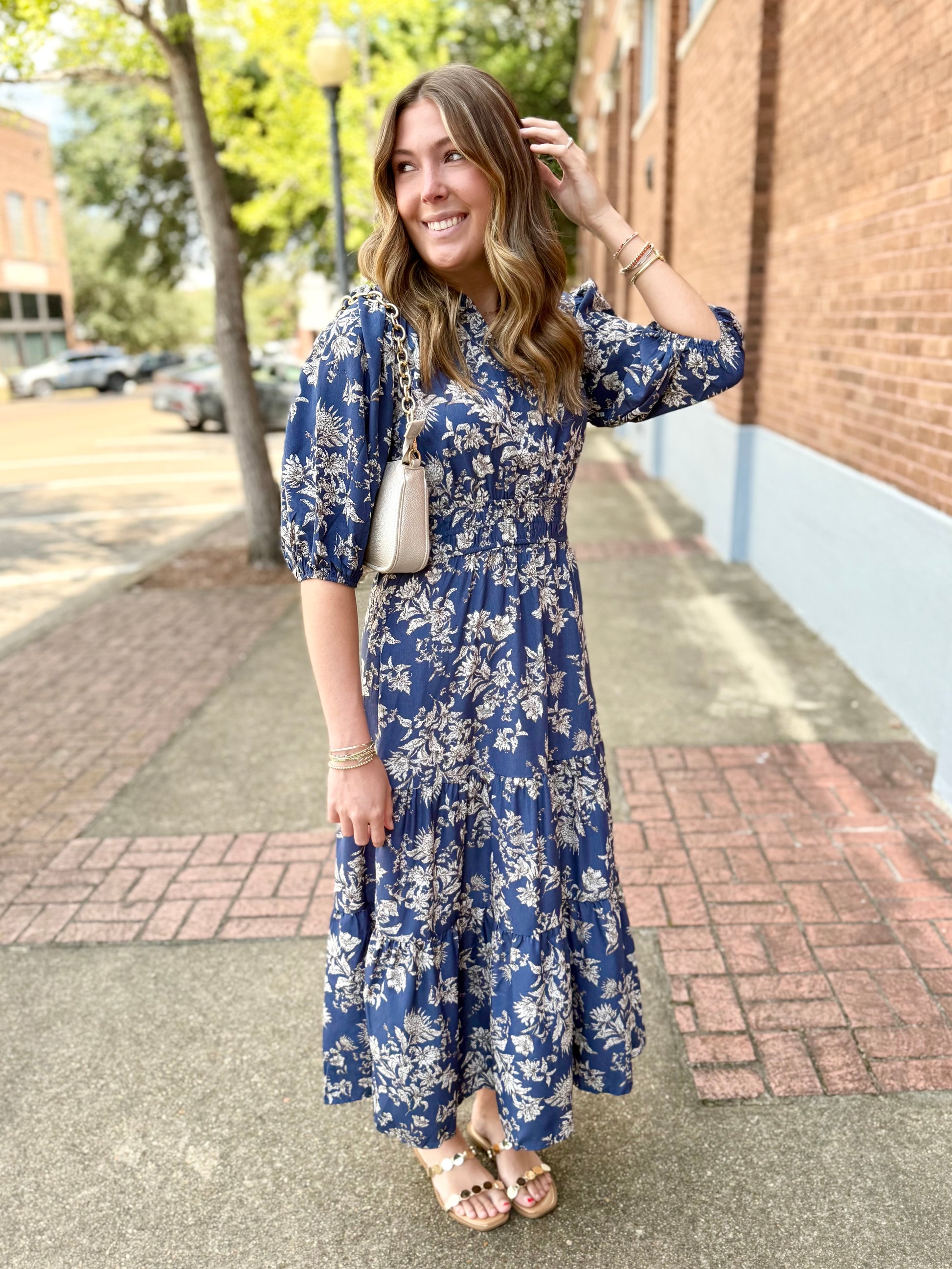 Our Love at First Sight Dress is a versatile addition to your wardrobe. Featuring a midi length and 3/4 length sleeves, this dress is perfect for transitioning into fall. Its timeless design and elegant silhouette make it a must-have for any occasion.