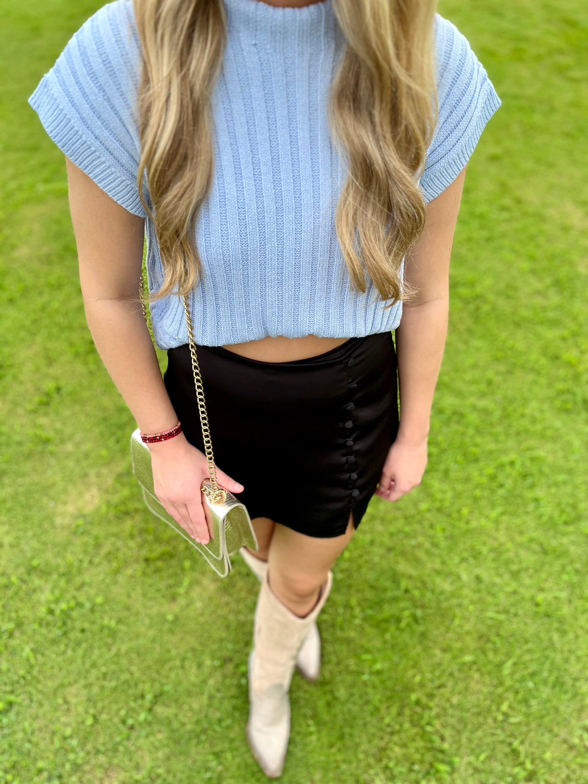 Spice up your wardrobe with The Riley Satin Skort! Its sleek satin fabric and faux button details make this skort a fashion statement that's sure to wow. And with an invisible side zipper closure, it's sure to fit you like a glove. Glam and comfy? You can have your cake and eat it too!