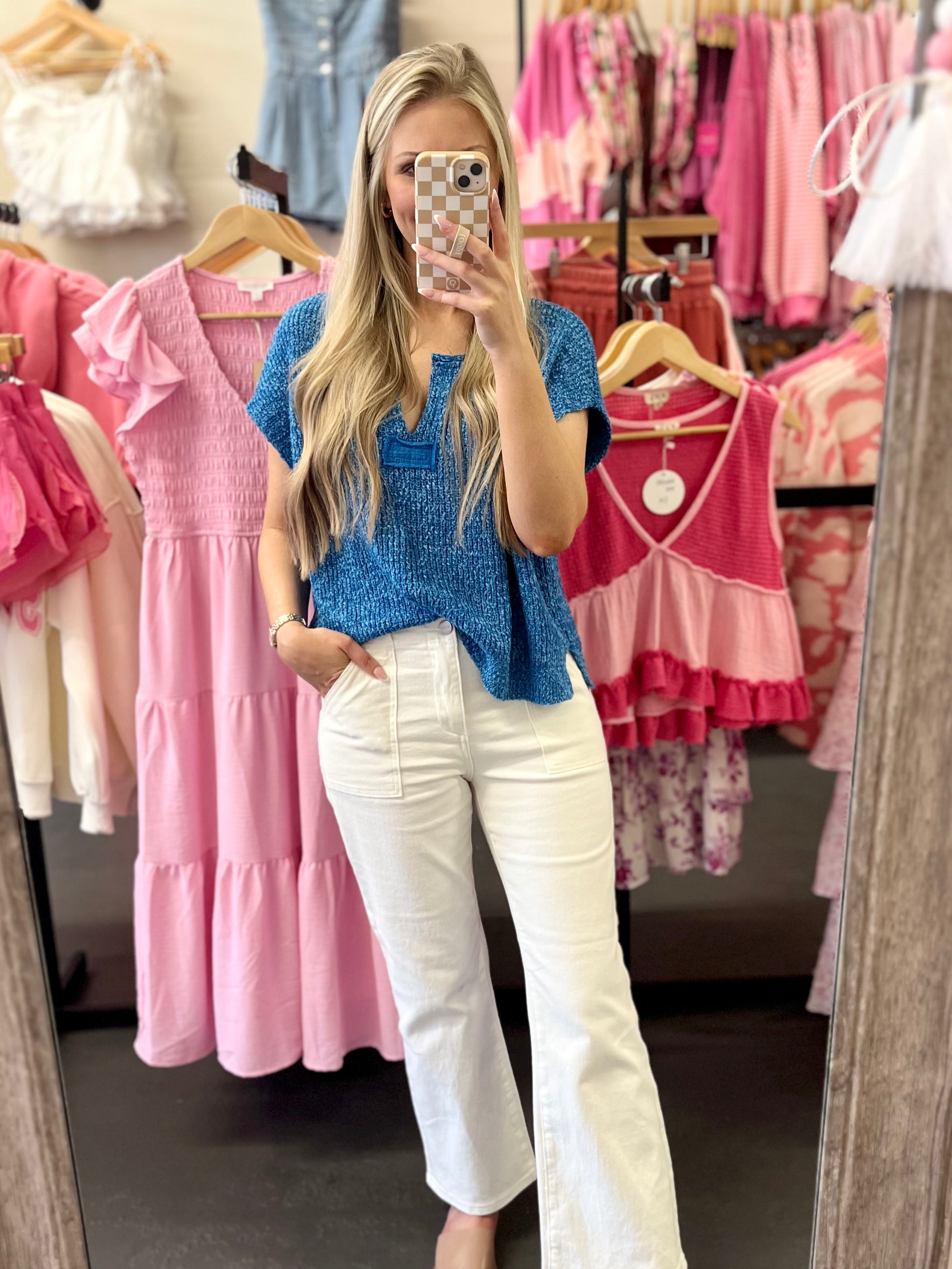 Elevate your wardrobe with the Zari Top. Designed with a split neck and side split, this knit pullover is perfect for transitioning from spring to summer. Effortlessly dress it up or down for any occasion. Available in 5 colors.