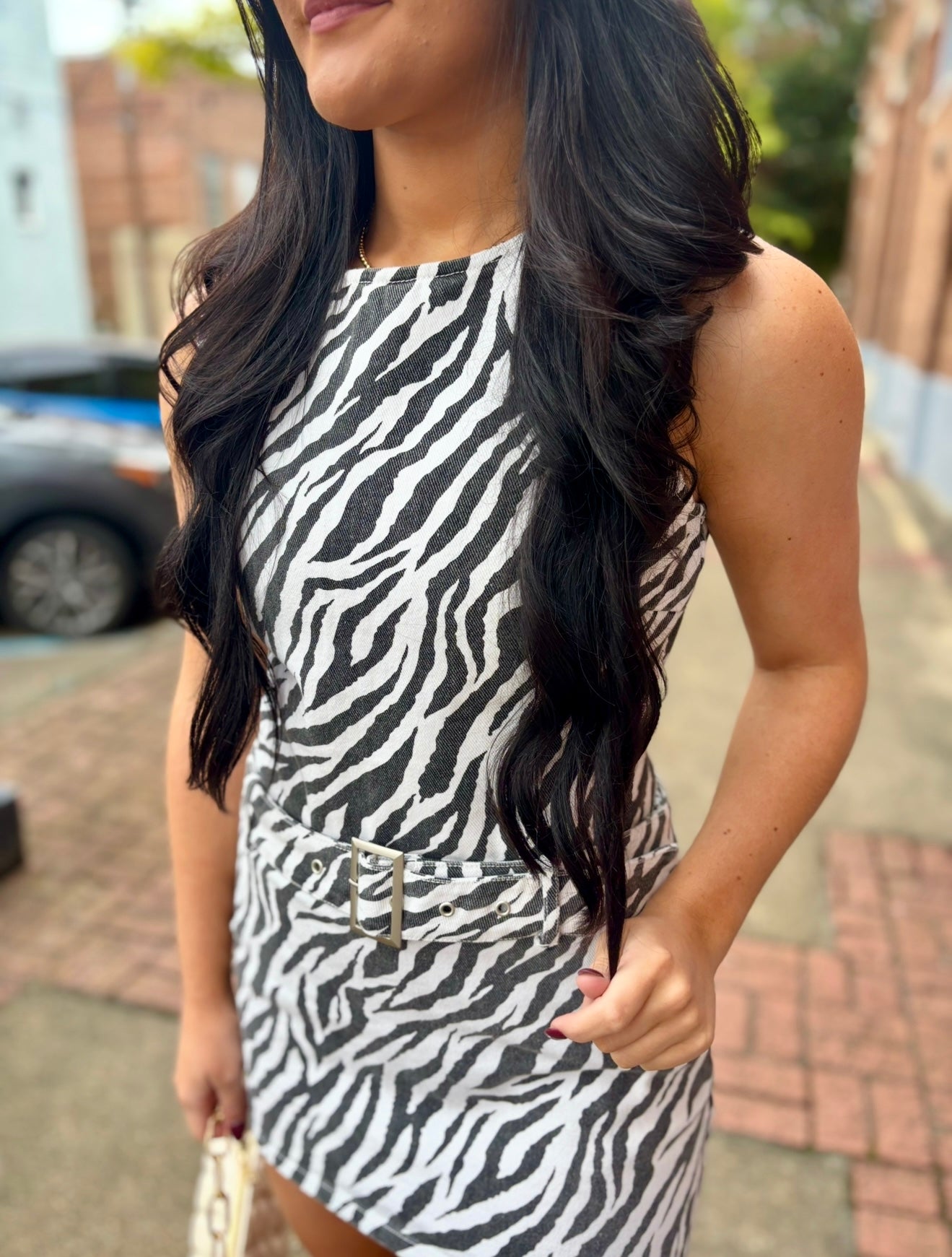 Effortlessly chic, this mini skirt with belt is a must-have for the fall season. Made from soft material, its playful zebra print adds a trendy touch to any outfit. Elevate your style with this versatile piece.
