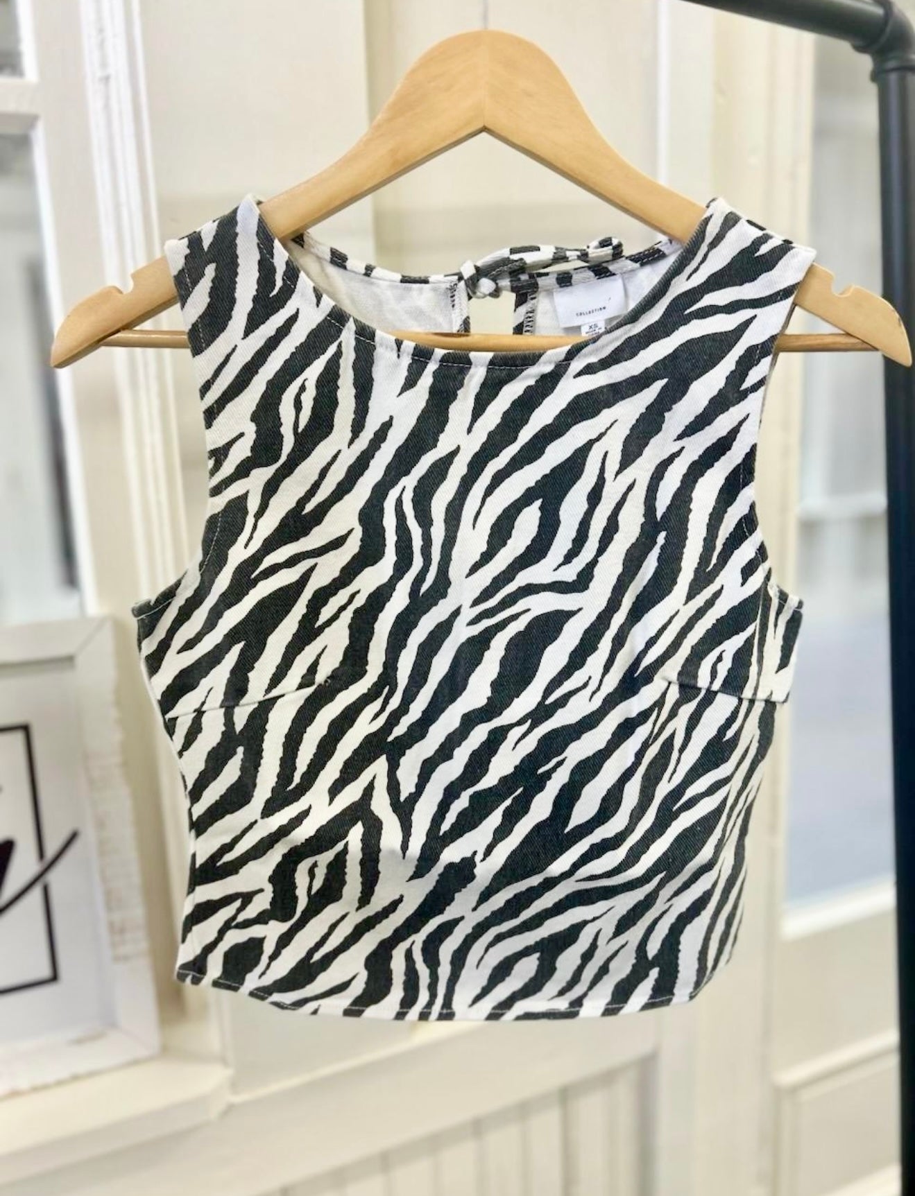Enhance your wardrobe with our zebra print top. The sleeveless design and soft material provide both comfort and style. The back keyhole detail adds a touch of elegance.